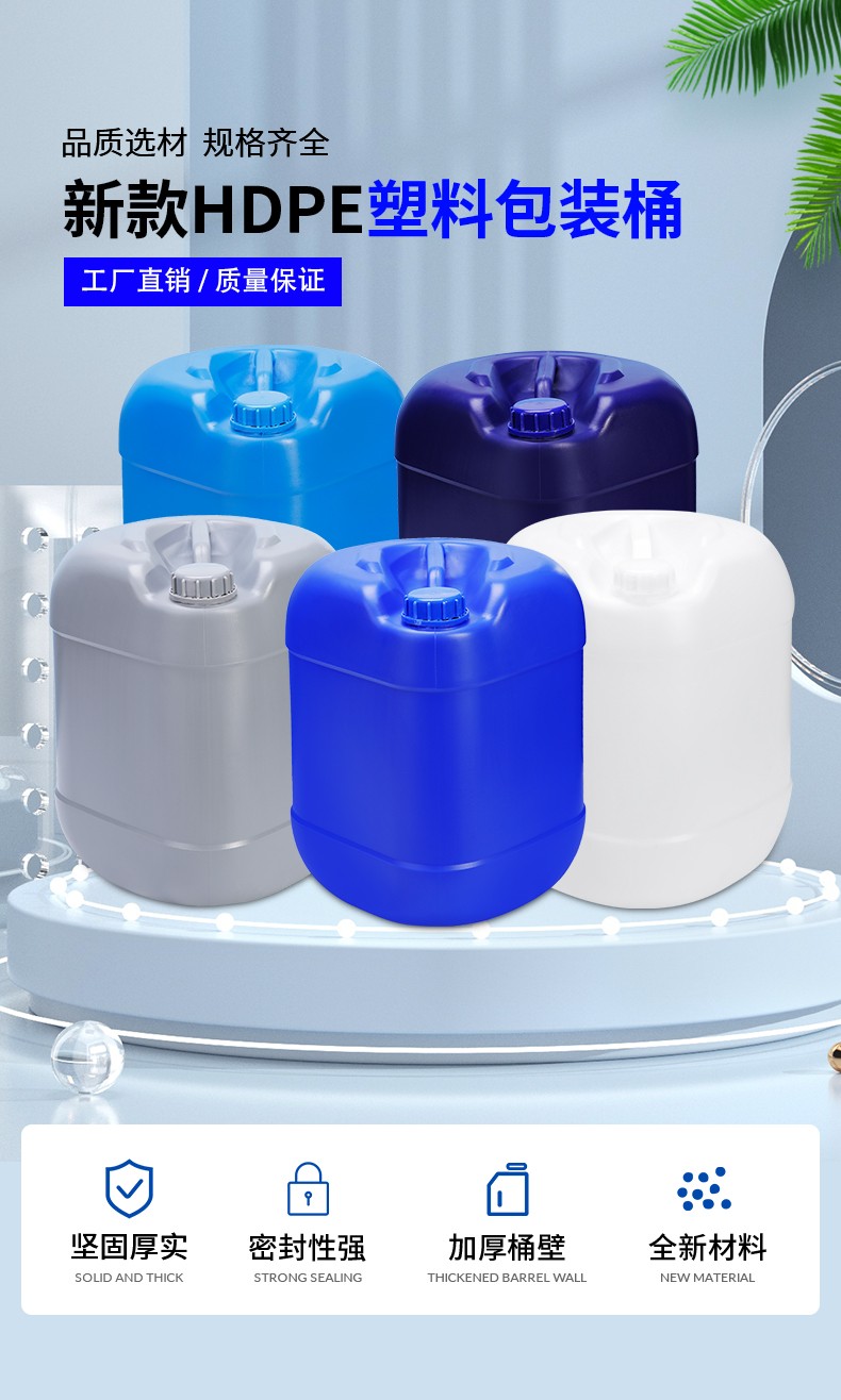 采用全新聚乙烯原料吹塑工藝制作而成,具有耐腐蝕,耐酸堿性,小口設(shè)計(jì)密封性能強(qiáng),廣泛應(yīng)用于化工清潔劑,表面處理劑、輔料添加劑、飼料添加劑, 樹脂農(nóng)藥,日用化學(xué)品,聚氨酯、膠黏劑 消泡劑 電解液等各行業(yè)液體包裝。