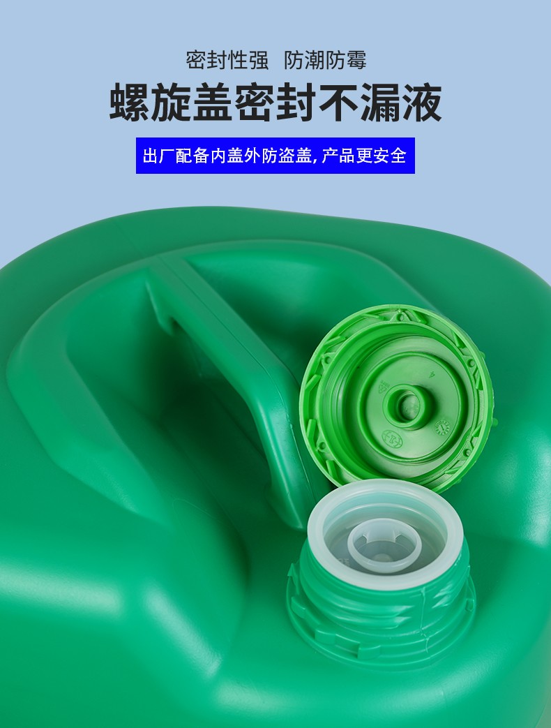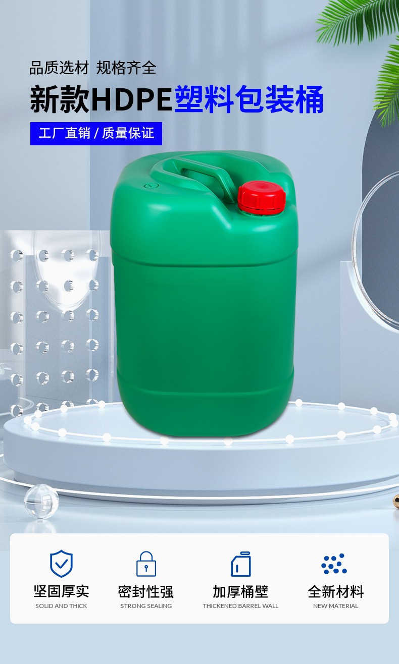 采用全新聚乙烯原料吹塑工藝制作而成,具有耐腐蝕,耐酸堿性,小口設計密封性能強,廣泛應用于化工清潔劑,表面處理劑、輔料添加劑、飼料添加劑, 樹脂農藥,日用化學品,聚氨酯、膠黏劑 消泡劑 電解液等各行業液體包裝。