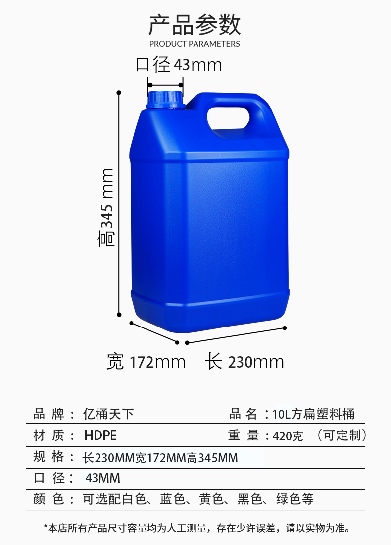 采用全新聚乙烯原料吹塑工藝制作而成,具有耐腐蝕,耐酸堿性,小口設(shè)計密封性能強,廣泛應(yīng)用于化工清潔劑,表面處理劑、輔料添加劑、飼料添加劑, 樹脂農(nóng)藥,日用化學(xué)品,聚氨酯、膠黏劑 消泡劑 電解液等各行業(yè)液體包裝。