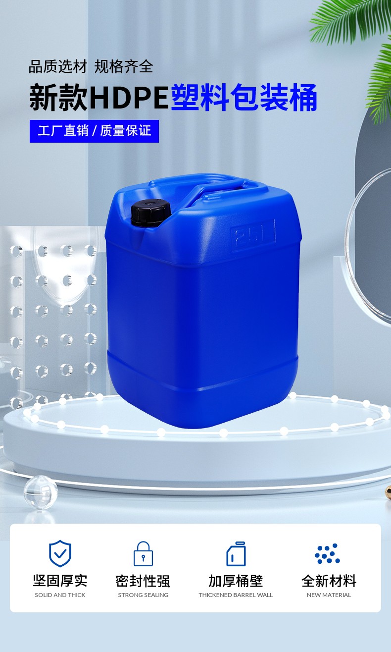 采用全新聚乙烯原料吹塑工藝制作而成,具有耐腐蝕,耐酸堿性,小口設計密封性能強,廣泛應用于化工清潔劑,表面處理劑、輔料添加劑、飼料添加劑, 樹脂農藥,日用化學品,聚氨酯、膠黏劑 消泡劑 電解液等各行業液體包裝。