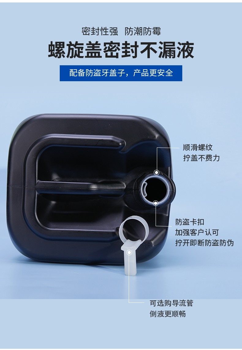 采用全新聚乙烯原料吹塑工藝制作而成,具有耐腐蝕,耐酸堿性,小口設(shè)計(jì)密封性能強(qiáng),廣泛應(yīng)用于化工清潔劑,表面處理劑、輔料添加劑、飼料添加劑, 樹脂農(nóng)藥,日用化學(xué)品,聚氨酯、膠黏劑 消泡劑 電解液等各行業(yè)液體包裝。
